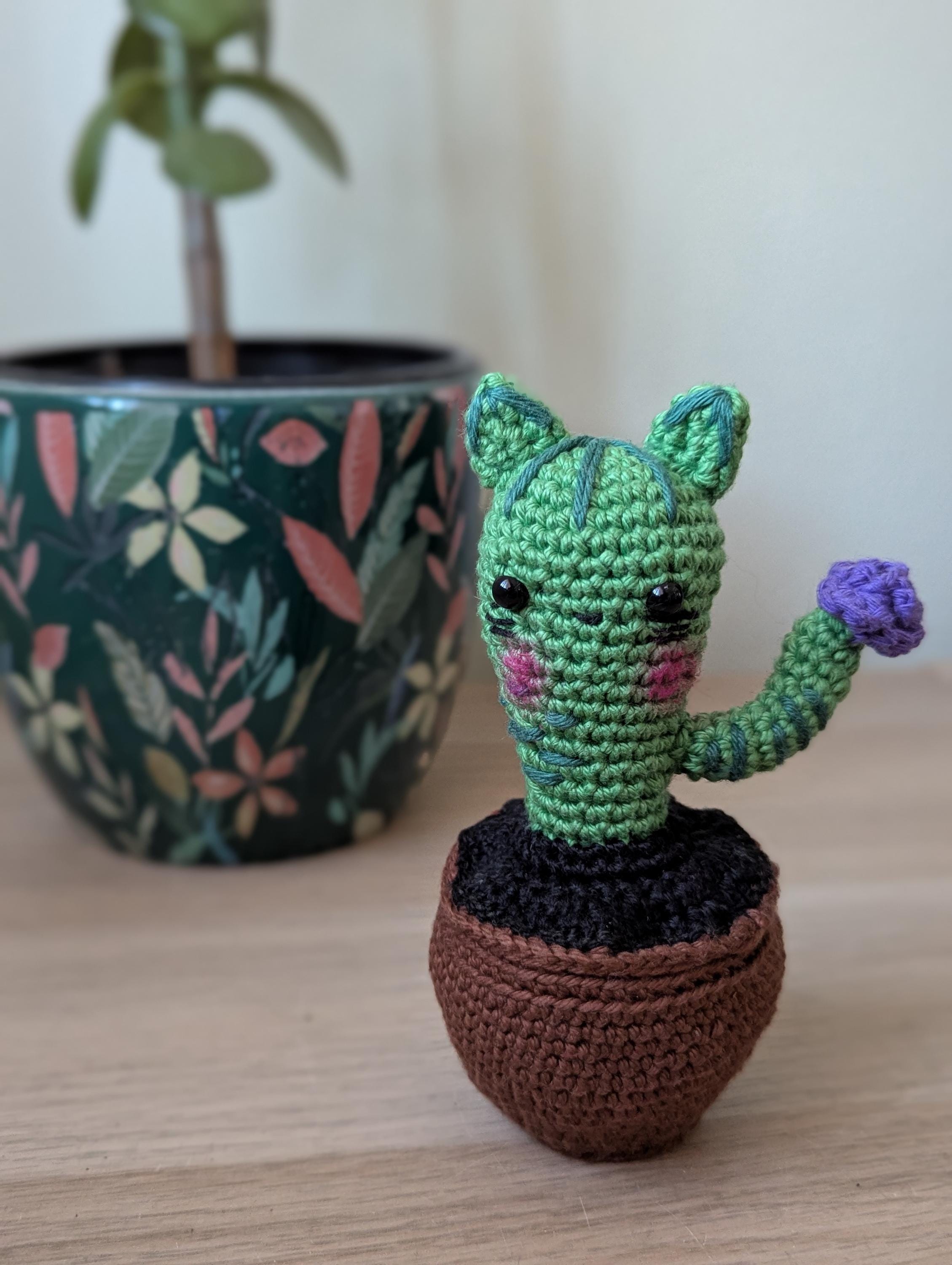 + This pattern is a crochet tutorial showing how I make the cactus. Your finished piece might look different depending on your crocheting skills, crocheting style and tension, materials/tools, and other variables.